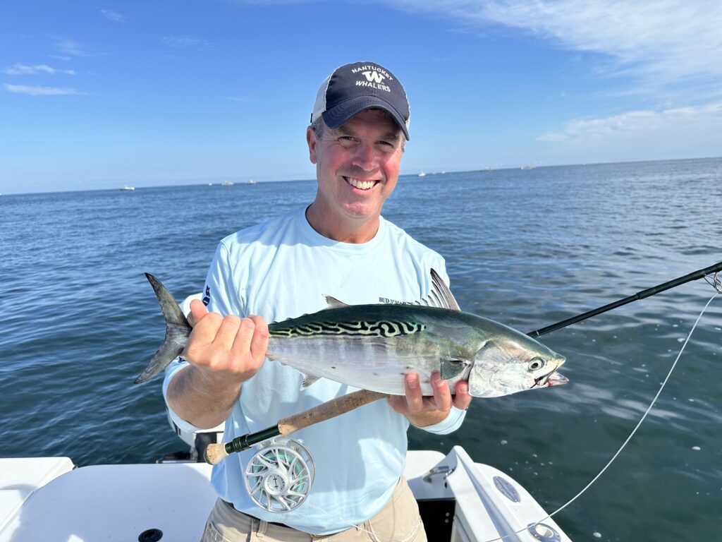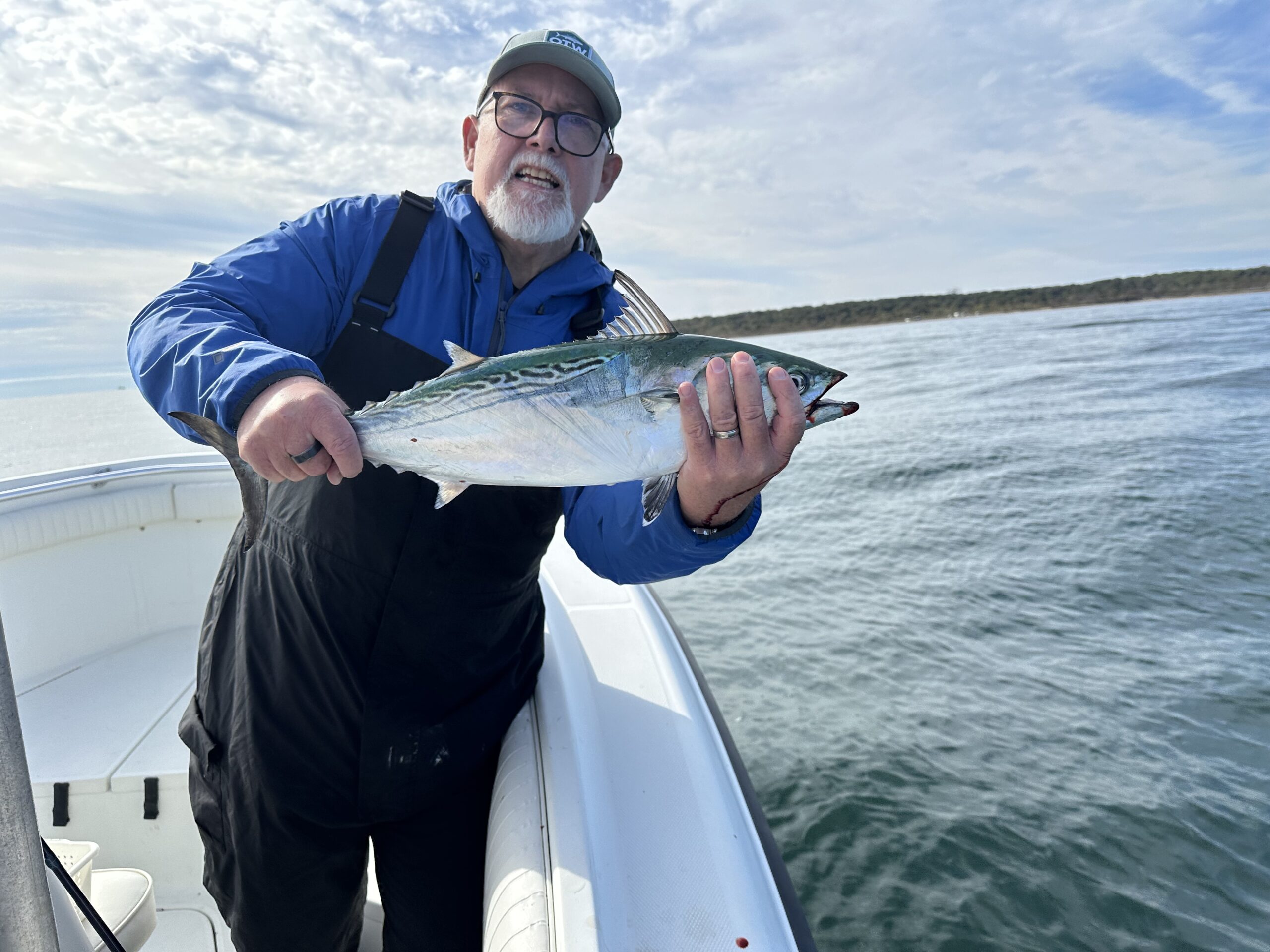 Today brought Chris and Rob down from the cold north woods. The weather was favorable and the intel was fresh so we decided on a boat ride. We arrived early to find things very quiet on the Albie grounds. We kept moving and found some hungry bluefish to get the skunk out of the boat. It wasn’t really what we wanted so we retraced our steps a bit and we found fish that wanted to play. We soon added a few bonito to the tally. Soon they were replaced by a god number of somewhat finicky albies. Both guys managed to fool some into eating. We left them chewing. A really fun day on the old briney.